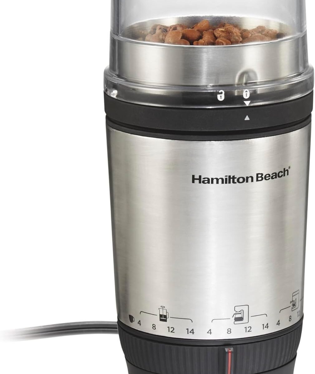 Hamilton Beach Stainless Steel Custom Grind Coffee Grinder, Grinds Enough for 4-14 Cups