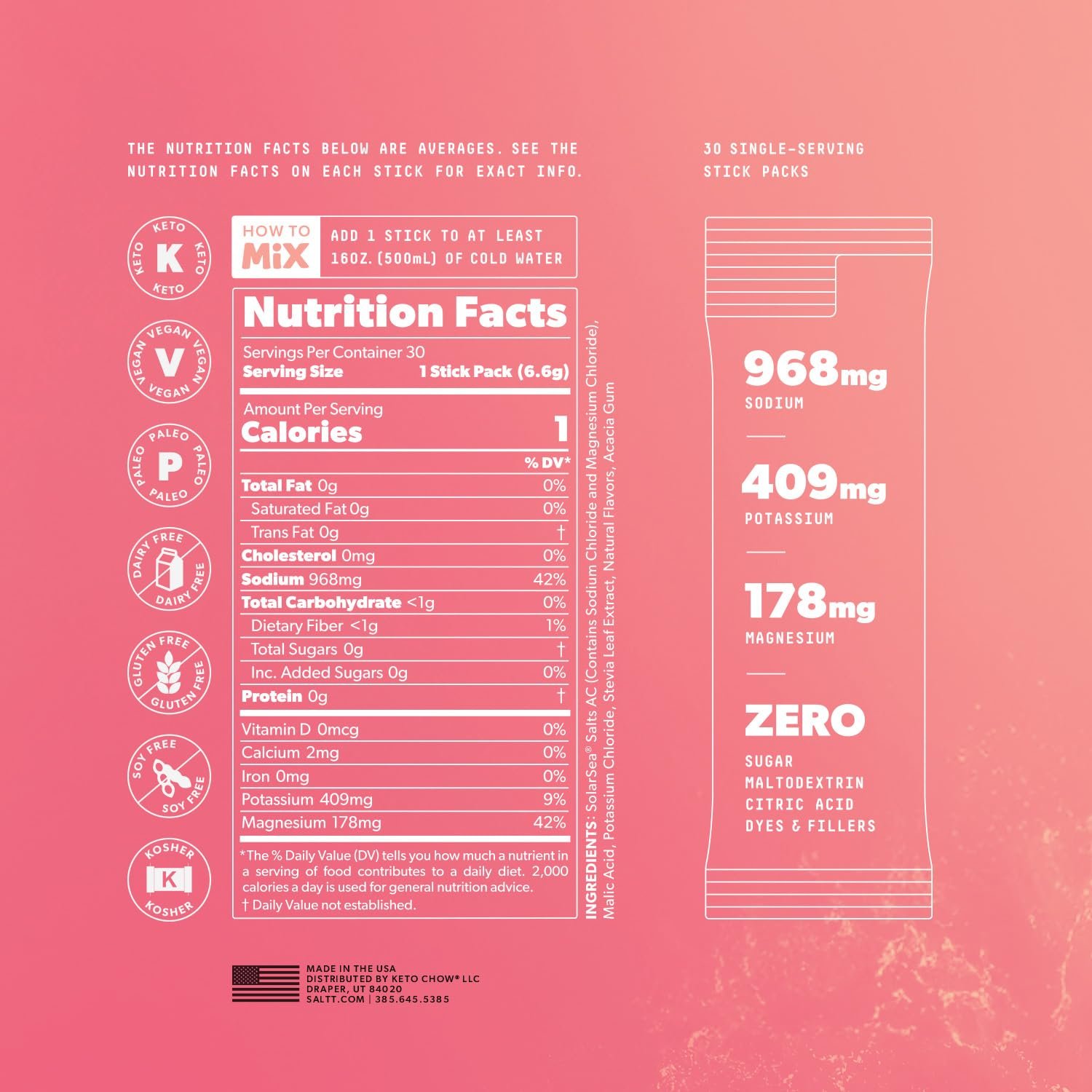 • A Complete Formula: Feel how we’re different with the Sodium, Potassium, & Magnesium your body craves. Unlike others, we don’t hyperfocus on just one of the 3 key electrolyte minerals; our formula has them all.